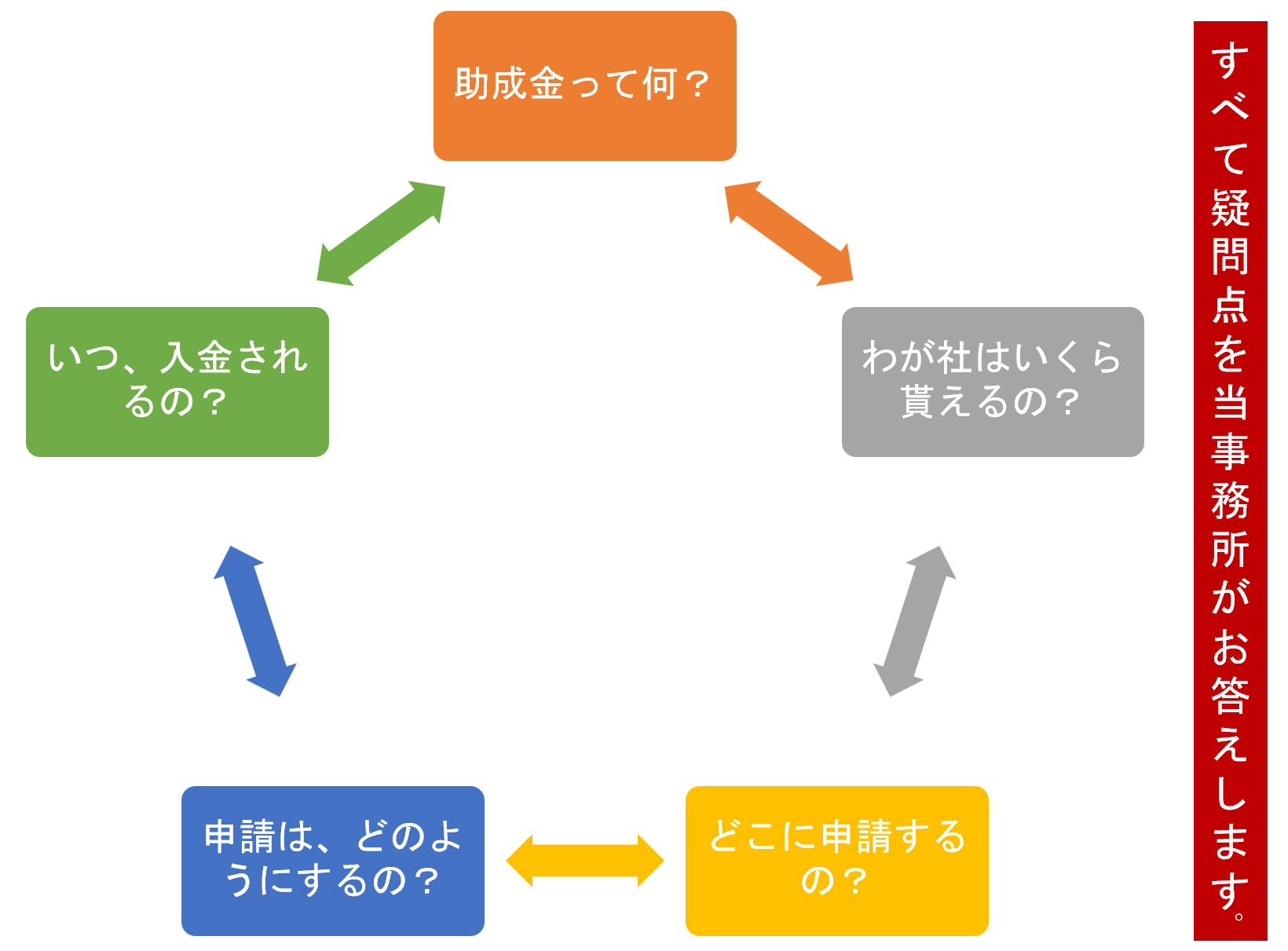 「助成金申請」の検討や「どのような助成金が可能なのか?」また、そもそも「助成金とは何なのか?」についてご相談を無料にて行っております。助成金について不安な事や、申請など様々なご相談を承ります。気になることがございましたら、お気軽に「こちら」よりお問い合わせください。